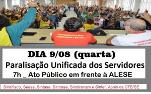 Quarta-feira, dia 9: Paralisação Geral de 24h dos servidores públicos estaduais 7 de agosto de 2017 Mais de 20 mil servidores do Estado ameaçam greve 4 de agosto de 2017 SINTRASE retoma cobrança sobre pagamentos de retroativos e titulações previstos no PCCV de Siriri 3 de agosto de 2017 Em assembleia unificada, servidores aprovam nova paralisação por 24h 1 de agosto de 2017 « Anterior 1 … 70 71 72 73 74 … 188 Próximo »